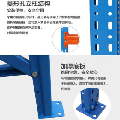 柱片—掛橫梁,一組貨架前后每層各一根,兩端卡裝ф5安全銷,每根橫梁需2只安全銷.?