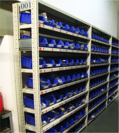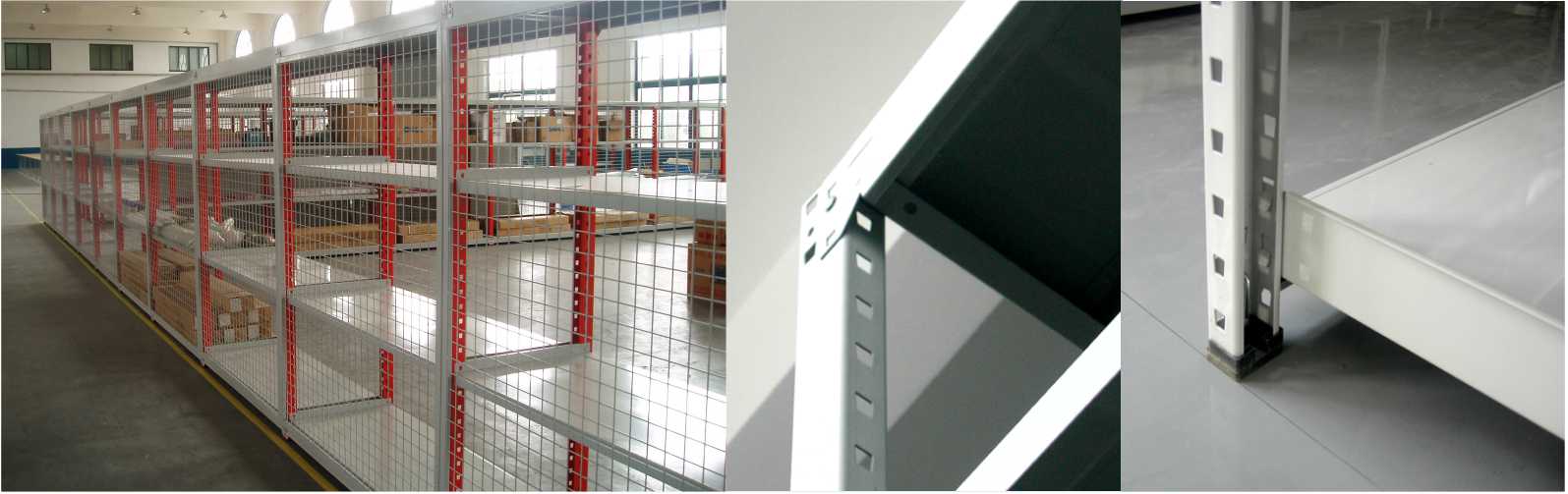 主要部件為冷板鈑金而成,可以按50mm步距自由上下調整,為便于人工存取貨物,貨架總高度最多可達3米。可單獨使用,也可自由拼接成各種排列形式。